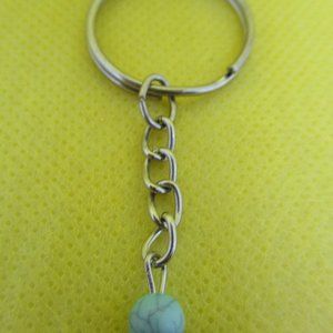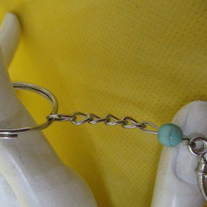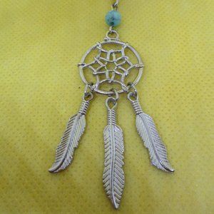 Never used vintage silver tone metal faux turquoise bead dream catcher 3 dangle feather chain link keyring /keychain.