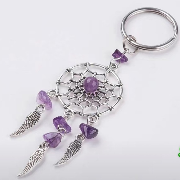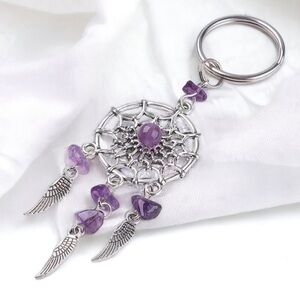 Dream Catcher Native American Keychain Silver Amethyst Purple