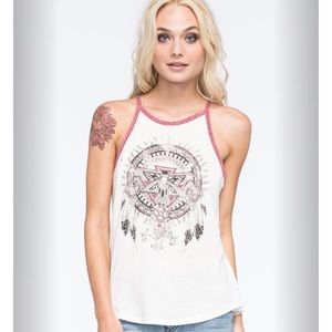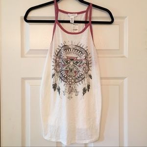 So cute and brand new! Fabric is 50% polyester, 38% cotton, and 12% rayon. Let me know if you have any questions!