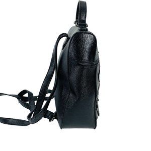 The exterior is made from faux leather, while the lining material is a combination of polyester and fabric in black. The gunmetal hardware color adds a sleek touch to the backpack.