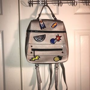 Great condition used. Dream Control retro patchwork silver backpack. Adjustable straps with top handle. Great for use as a purse. Small/mini backpack style. Minor scratch on back (see last picture).