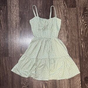 Dream Girl dress light green and with white polkadot size 7/8. Spaghetti strap top.