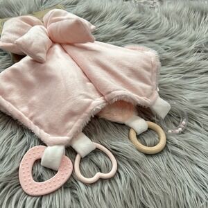 Dream Gro Pink Bow Activity Blankie Lovey Security Blanket Teether and Rattle