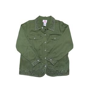 Dream Jeannes Quaker Factory Stretch Denim Green Embellished Jacket Size 1X