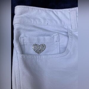 Nice pair of cotton spandex blend of Dream Jeanne’s by Quacker Factory in a women’s size 12. These white jeans measure (laying flat):