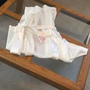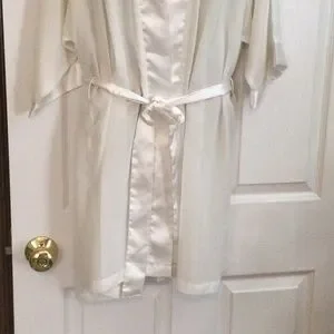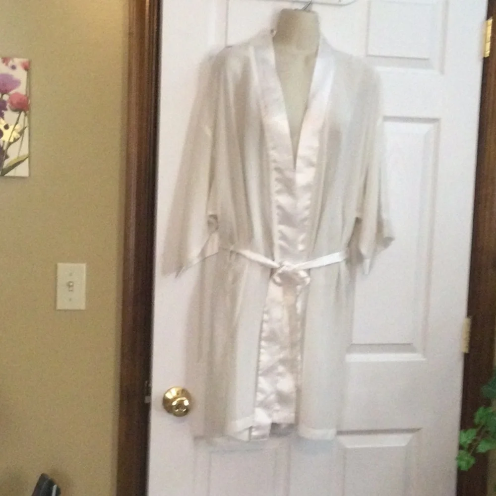 37 inches from shoulder to bottom of robe, wrap around with tie. Lightweight and sheer, see thru. Very good condition.