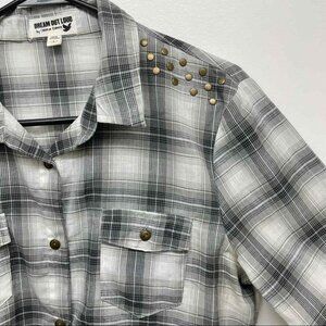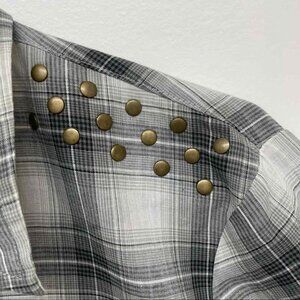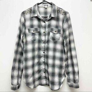 Selena Gomez Dream Out Loud Plaid Studded Shoulder Button Down Long Sleeve Shirt Large