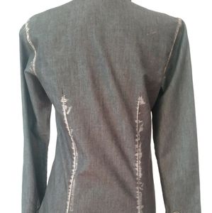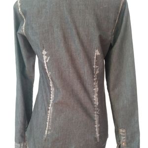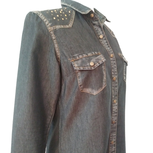 Dark denim long sleeve snap front shirt. Pockets on front also snap. The dark denim has a washed out look. In great condition and no flaws.