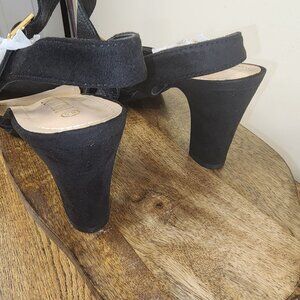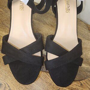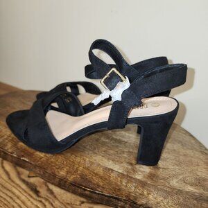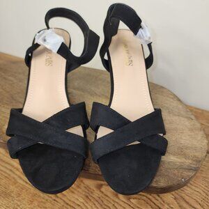 Dream Pairs Black Faux Suede Chunky Heeled Cross Toe Sandle