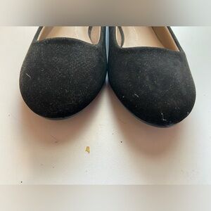 Pre-owned Dream Pairs black flats in size 9. These shoes show signs of wear, including some dust and scuff marks on the suede material. Still, they’re stylish and comfortable with cushioned insoles.