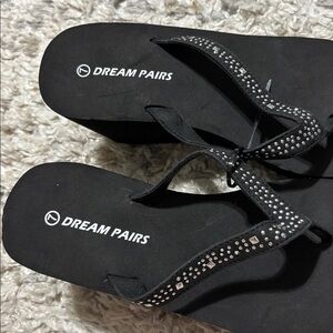 Dream Pairs Black Rhinestone Platform flip flops nwot women’s size 7