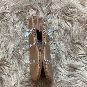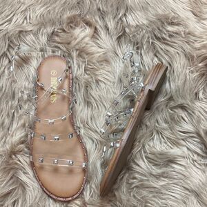 Dream Pairs CLEAR/RHINESTONE Studded Gladiator Strappy Flat Ankle Strap Sandal