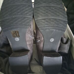 Chic and versatile over-the-knee boots. Perfect for day or night. Comfortable block heel. Boot height approximately 20", heel height 2". Lace up design at the back, keeps boots in place and prevents slouching.