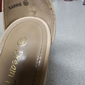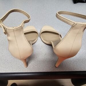 Dream Pairs Cream Heels with Thin Ankle Strap and Block Heel