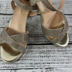 Dream Pairs Heels Pumps Shoes sz 7.5 Gold Sparkles Wedding Cocktail Evening
