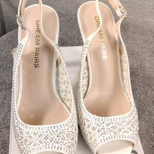 Dream Pairs Invest Womens Shoes Rhinestone Slingback Peep Toe Heels White Size 7