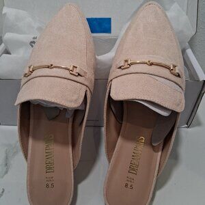 Dream Pairs Ladies Suede Pointed Toe Flat Mules Beige US 8.5 Brand New in Box