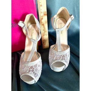 Dream Pairs “Laura L” Grey Lace Platform Pump 5” High Heel Shoes, Adj Buckle
