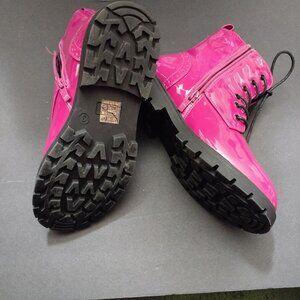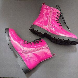 Dream Pairs Pink Patent Leather Combat Boots W/ Lug Soles & Side Zipper SIZE: 3