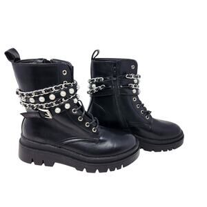 Dream Pairs Platform Side Zipper Metal Chain Punk Style Boots Black Size 6.5