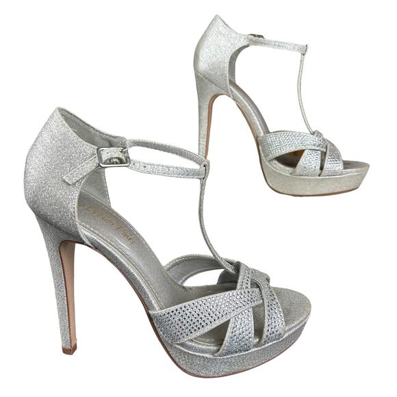 Dream Pairs Pumps Women Size 7.5 Silver Glitter T Bar Strappy Stiletto Platforms