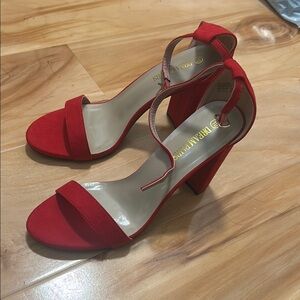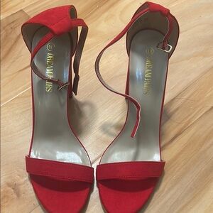 Elevate your style with Dream Pairs' vibrant red heels, designed with sleek suede-like straps and a secure ankle buckle. The chunky block heel offers both stability and comfort, making these shoes a standout choice for any fashionable event.
