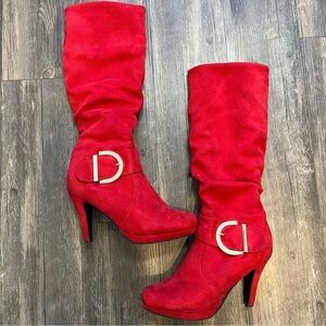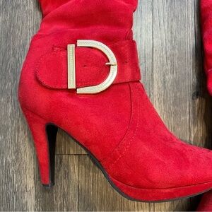 Dream Pairs Red Suede Fur Lined High Heels Boots With Gold Buckle Size 8