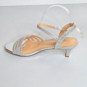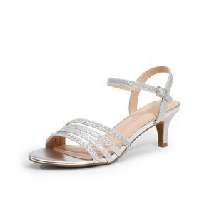 Dream Pairs Silver Glitter Rhinestone Strap Low Heel Dress Sandal Shoe Sz 7.5