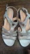 Step out in style with these elegant silver strappy sandals. Perfect for any occasion, these shoes offer both comfort and sophistication. Excellent used condition. Three holes on side buckle.