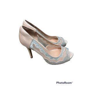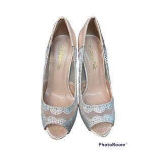 Dream Pairs Studded Peep Toe Color Champagne Satin Stiletto High Heels Size 7.