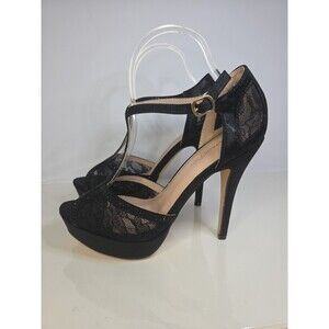 Dream Pairs Swan Sexy Platform Black Lace Sparkly Beaded Ankle Strap Sz 9 NWOB