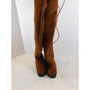 Dream Pairs Thigh High Low Heel Fashion Boots sz 7.5 M Tan Faux Suede