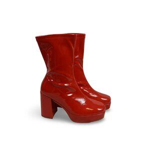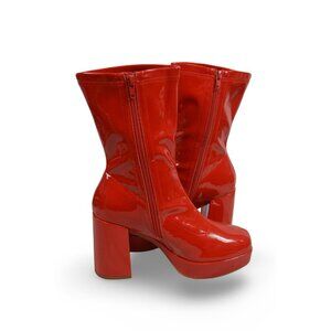 Dream Pairs Women Mid Calf Gogo Platform Boots Block Heel Square Toe Red 8.5