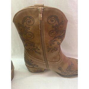 Dream Pairs Women's 9 Cowboy Cowgirl Western Ankle Brown Booties Low Chunky Heel square toe.
