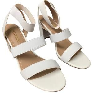 Dream Pairs Womens 9 White Elastic Ankle Strap 3.5" Block Heel Open Toe Shoes