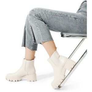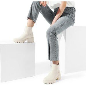 Dream Pairs Womens Beige Polyurethane (PU) Slip On Chunky Platform Ankle Boots