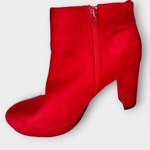 Dream Pairs Womens Boots Sz 9.5 Sianna Red Suede Heels Block Zip Chunky Ankle
