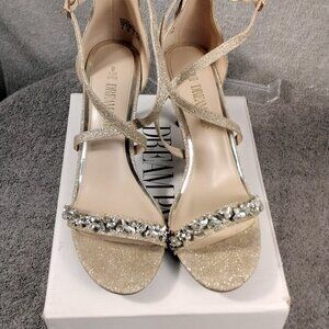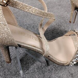 Dream Pairs Womens Gold Glitter Rhinestone Heels Size 8 Strappy Ankle Sandals