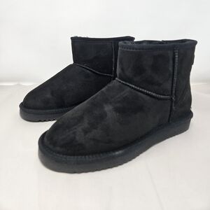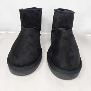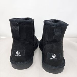 Dream Pairs Womens Mini Boots Sz 8 Black Faux Suede & Fur Pull On Winter Casual