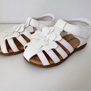 NWOT. Adorable toddler white sandals with decorative floral design. Easy to style for all different outfits. Toddler size 8. These sandals provide all day comfort for your kiddo. Soft and slip resistant outsole and the closed toe design protects your little ones toes. Excellent condition and comes from a smoke free home.