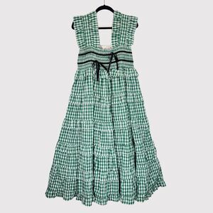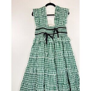 Dream Sister Jane Dress Green Roller Gingham Midi Tiered Ruffle Smocked Large