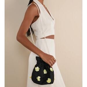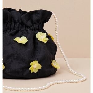Dream Sister Jane Fanciful Flowers Black Jacquard Flower Pearl Bucket Bag