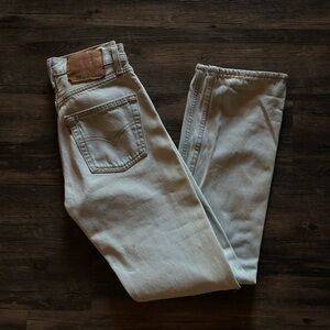 Gorgeous pair from my personal. These are the EPITOME of the perfect 90s jean, but with a unique twist! Gorgeous light blue wash, petite/snug waist, snug fit on the hips/legs down to a straight/tapered finish. Causal wear, in overall beautiful vintage condition. Might be best for a snug 24’ , relaxed 23’, but please see all measurements to ensure your desired fit💙