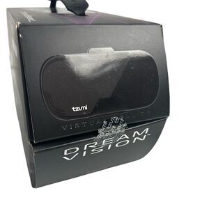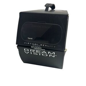 The Tzumi Dream Vision by Dream Vision is a smartphone VR headset designed for immersive experiences. It features built-in audio and offers universal compatibility, supporting 360 video capability. The headset accommodates smartphones with a maximum screen size of 6.0 inches and is constructed from durable plastic. The product is new in box, OS. Keywords: Dream Vision, Tzumi, smartphone VR headset, built-in audio, universal compatibility, 360 video, 6.0 inch screen, plastic, new in box, OS.