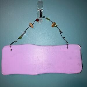 Small painted purple wooden hanging sign with red hearts, says "dream girl". Y2K, romantic, coquette, cottagecore. Twisted wire hanger with decorative buttons and beads along it. Sign measures 8.5" by 3". Good condition pre owned, couple spots of chipped paint.