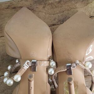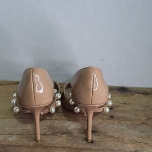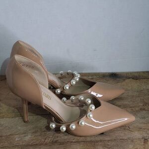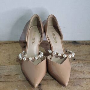 Dream pairs tan Pearl Straps Pointed Toe Stiletto Heel Pumps. Worn once, had imperfection to heel Knick and bottoms light wear.