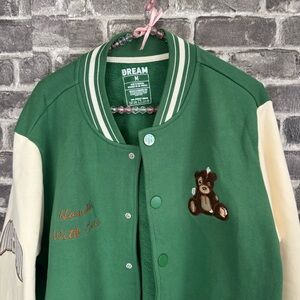 Dream variety jacket Green with white sleeves embroidered snap button front