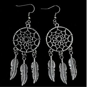 DreamCatcher Earrings Boho Western Feather Pendant Pierced Dangle Drop Silver