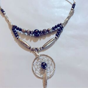Dream Catcher Necklace w/ Hematite & Sterling Silver Beads 16” Gorgeous
