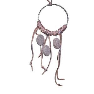 Handmade statement necklace. Dream catcher pendant with hanging stones. Hits mid chest. Beautiful brown fringe. Add this unique piece to your collection!